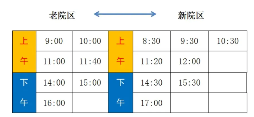 我院将开通新、老院区摆渡车,具体发车时间如下: