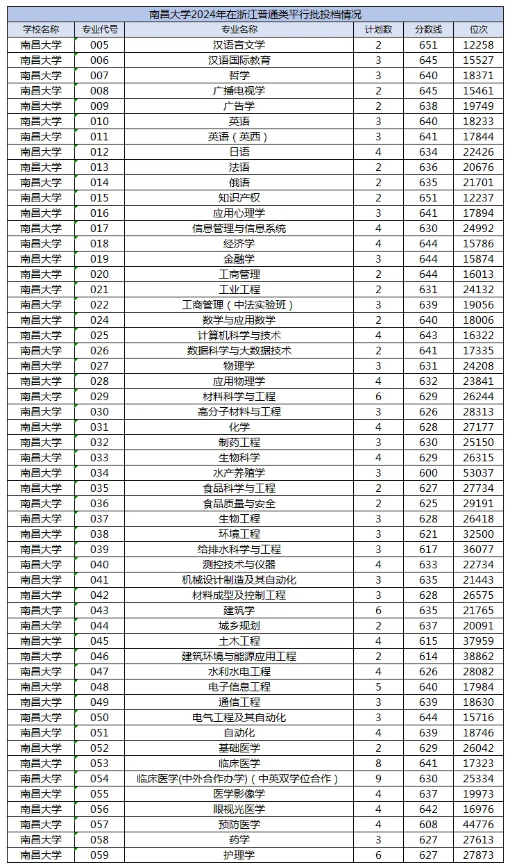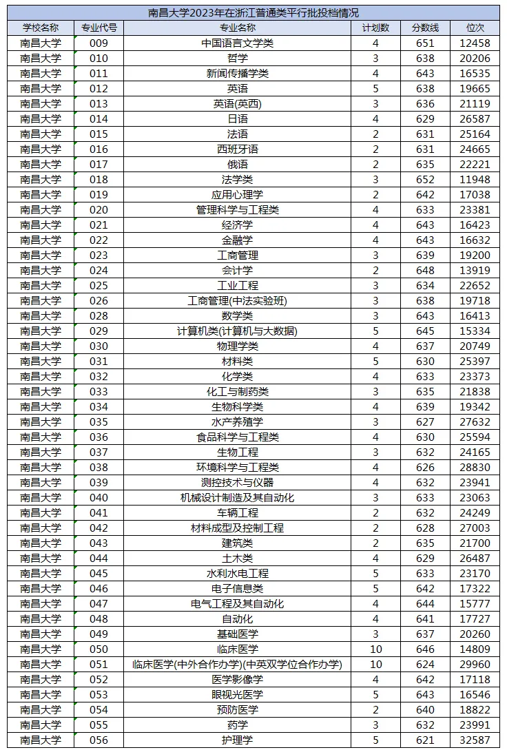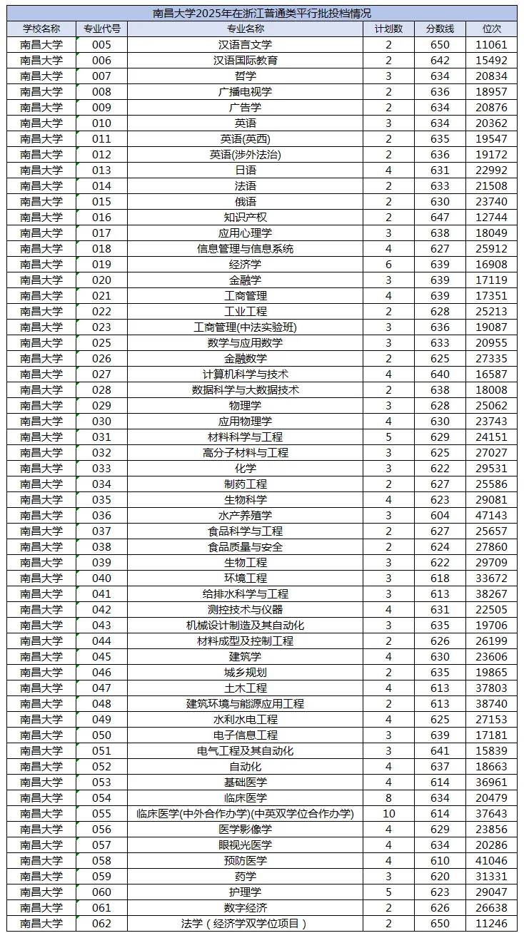 浙里说教整理了南昌大学2023-2025年在浙江普通类平行批的投档数据,帮大家直观看到专业分数线和位次变化趋势。