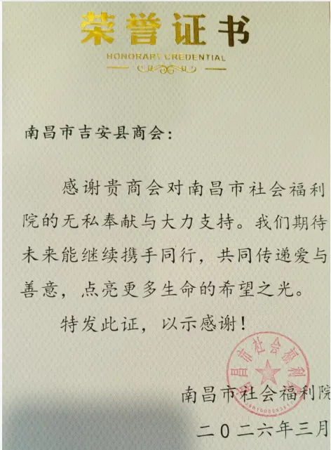 《贺南昌市吉安县商会获爱心大使荣衔》