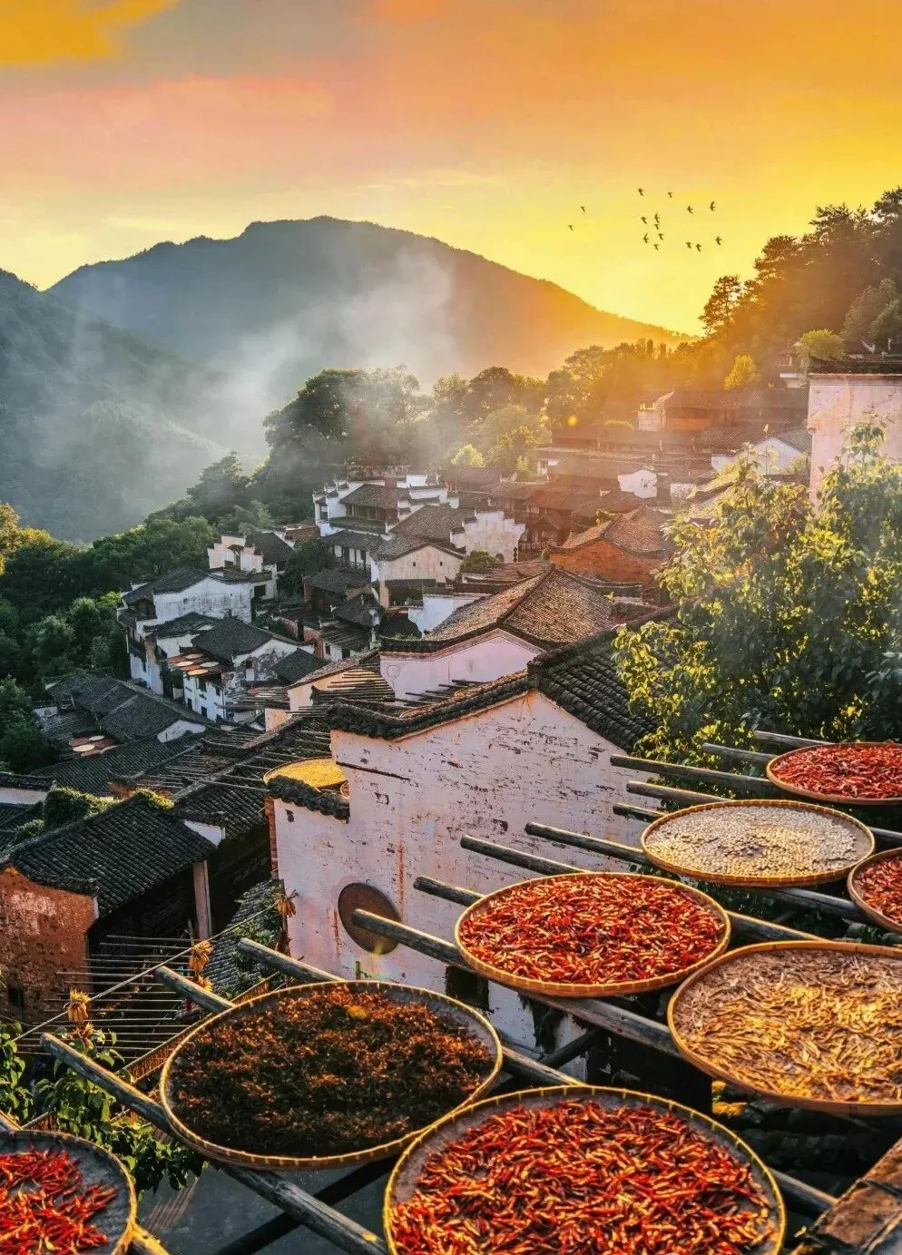 游览约3小时,篁岭可谓是浓缩版的婺源,集古村古树、梯田花海、民俗晒秋、高空揽胜为一体的美丽乡村景致。篁岭属典型山居村落,民居围绕水口呈扇形梯状错落排布。周边千棵古树环抱,万亩梯田簇拥,村落“天街九巷”似玉带将精典古建串接,徽式商铺林立,前店后坊,一幅流动的缩写版 “清明上河图”。殿堂级艺术村落,明清古建集中且精美,五百米“天街”商铺林立、古趣盎然,艺术创作随处可见。远眺梯田花海,一个360º全画幅观景平台,周边是层层叠叠、流光溢彩的千亩梯田,四季花海在这不断演变着各种“断魂”主题,大地艺术在这里成就了最强音符。登晒秋观景台,观特有的篁岭“晒秋”农俗特色景观,数十栋古老徽派民居在百米落差的岭谷错落排布,家家凿窗采光,户户支架晒物。村民们用眺窗为画板,支架为画笔,晒匾为调色盘,春晒水笋、蕨菜;秋晒红辣椒、稻谷黄豆…就这样成就了一幅幅民俗风情杰作,一年四季延绵有序。