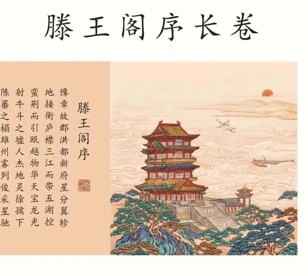 王勃一句“落霞与孤鹜齐飞,秋水共长天一色”,把滕王阁的壮丽,眺望的广远,景色的鲜明,描绘的淋漓尽致,成为经典而流传后世。
