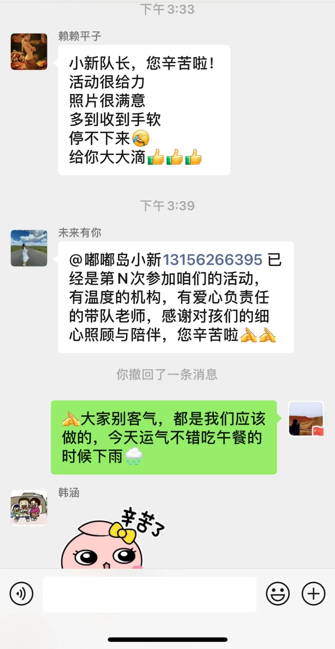 3.大朋友与小朋友带好更换的衣服,带一些长袖以便晚上冷。5.外出游玩,请备好常用药品(如创可贴、消炎药、感冒药、发烧药、晕车药等)。7.入住酒店后,检查酒店为你所配备的用品(卫生间防滑垫等)是否齐全,有无破损。8.带好个人身份证,儿童协带户口簿,为了入住、机票登机使用。9.其它应知事项和条款,请详细阅读《用户须知及安全告知书》。