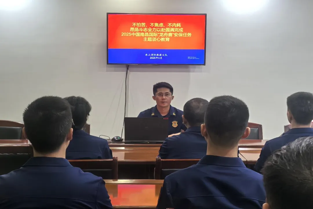 2025年5月23日至24日,中国南昌国际龙舟赛在南昌红谷滩区九龙湖水域举办。在总队、支队党委的坚强领导下,水上大队坚决扛起主场责任,紧跟上级要求、紧贴一线实际,把握遂行思想政治工作重心,增强队伍核心凝聚力,为赛事消防安保注入了源源不断的思想动力。