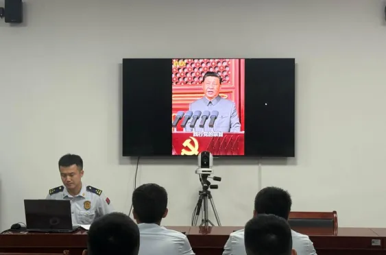 红色光影作为历史的见证和传承,蕴含着丰富的革命精神和爱国情怀,是加强党性教育和思想道德建设的重要载体。队伍各级党组织因地制宜组织集中观影活动,依托红门影院等阵地,选取一系列红色题材,重温习近平总书记在庆祝中国共产党成立100周年大会上的讲话,集中观看《建党伟业》《浴血誓言》《我和我的祖国》等电影,从党史学习中深刻理解中国共产党为什么能,中国特色社会主义为什么好,归根到底是因为马克思主义行,增强了奋进新征程的使命担当。