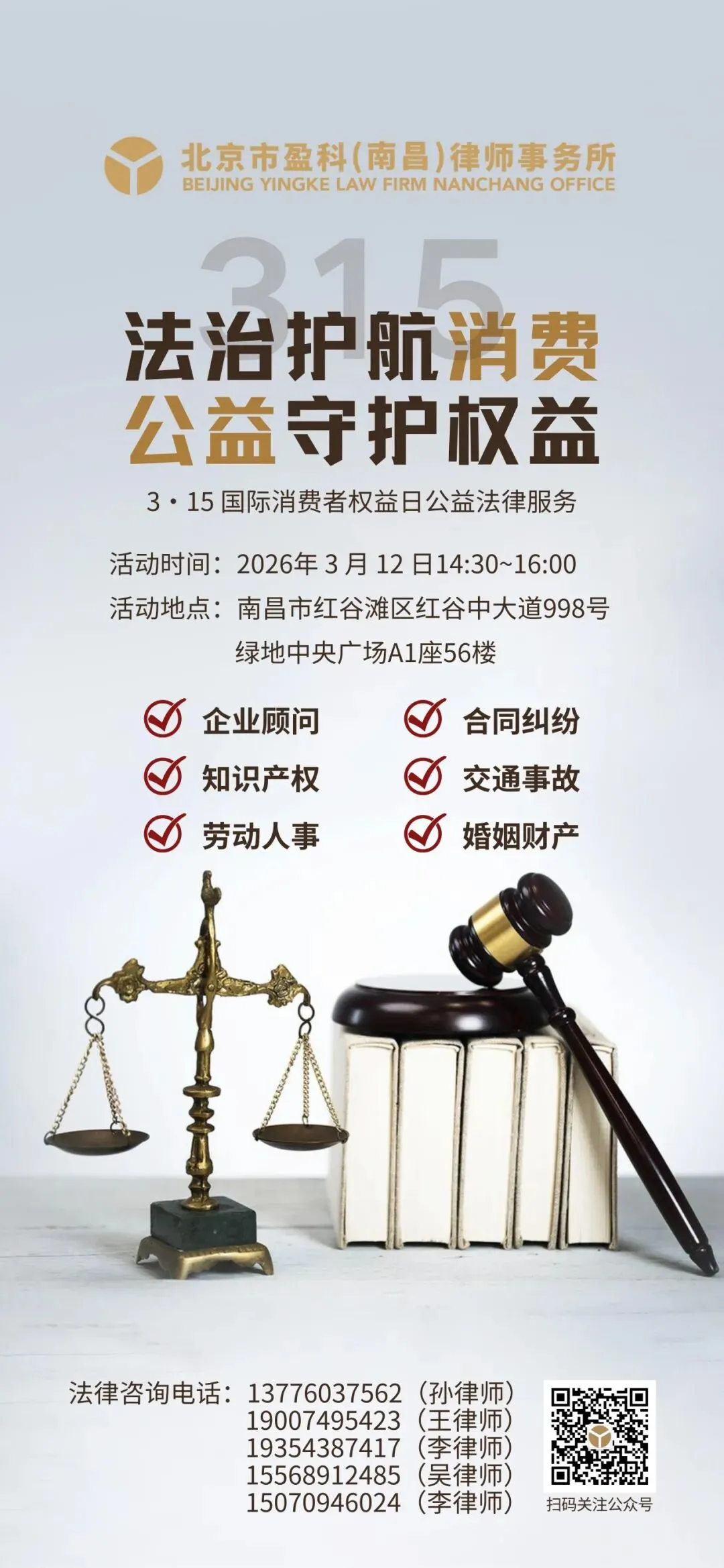 预告丨盈科南昌“法治护航消费·公益守护权益”主题公益法律服务活动即将启幕