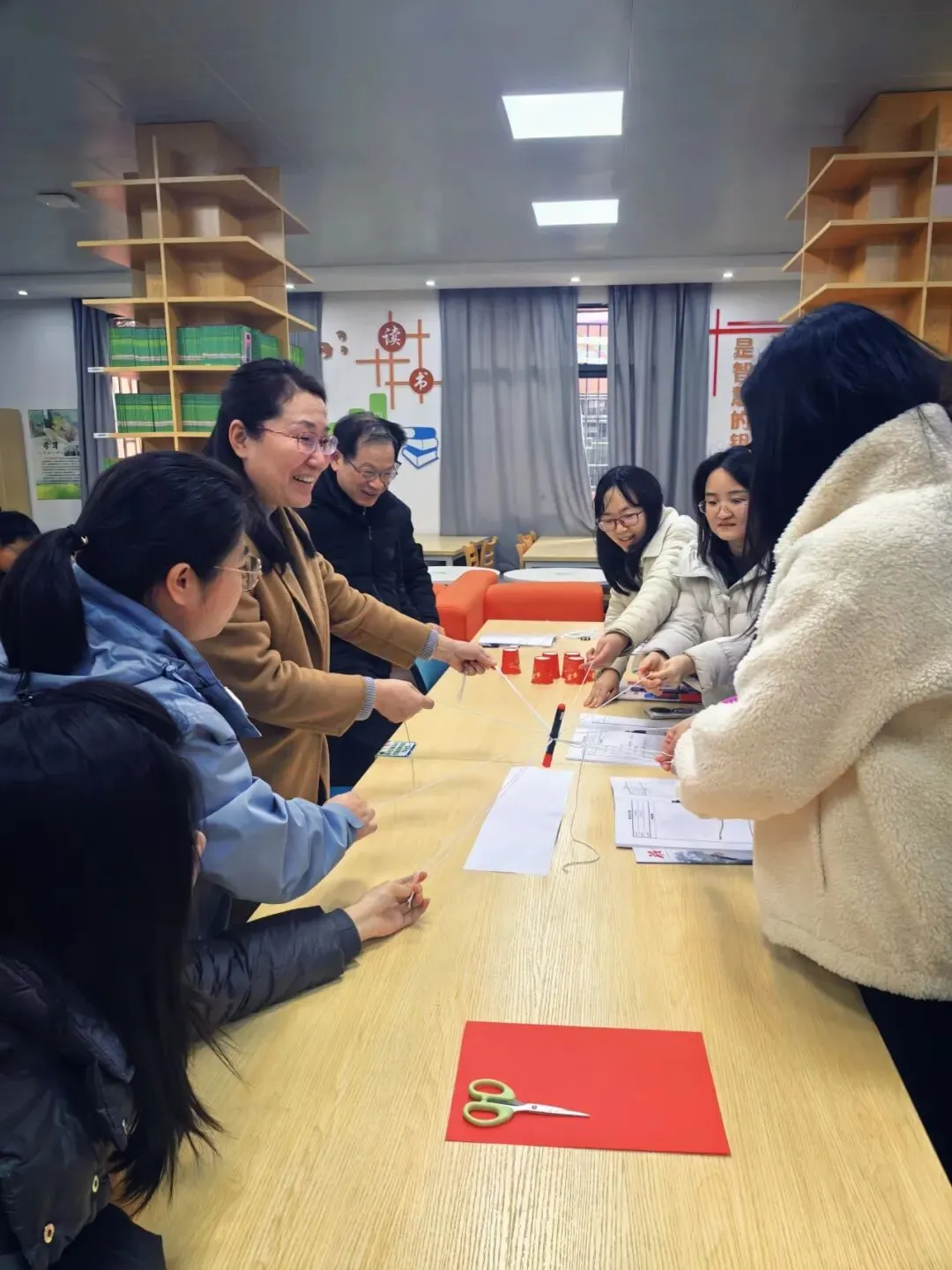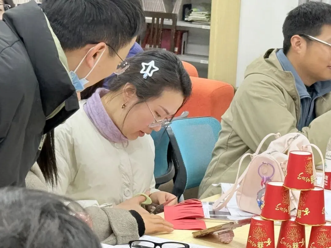 压轴登场的“圈住福气”将活动推向高潮。一张红纸、一把剪刀,在老师们的巧思与协作下,化作能套住全体组员的“同心圈”。当红色圆圈将大家紧紧相连,现场掌声不断、欢笑连连,圈住的是福气,更是十中德育团队的温暖与同心。