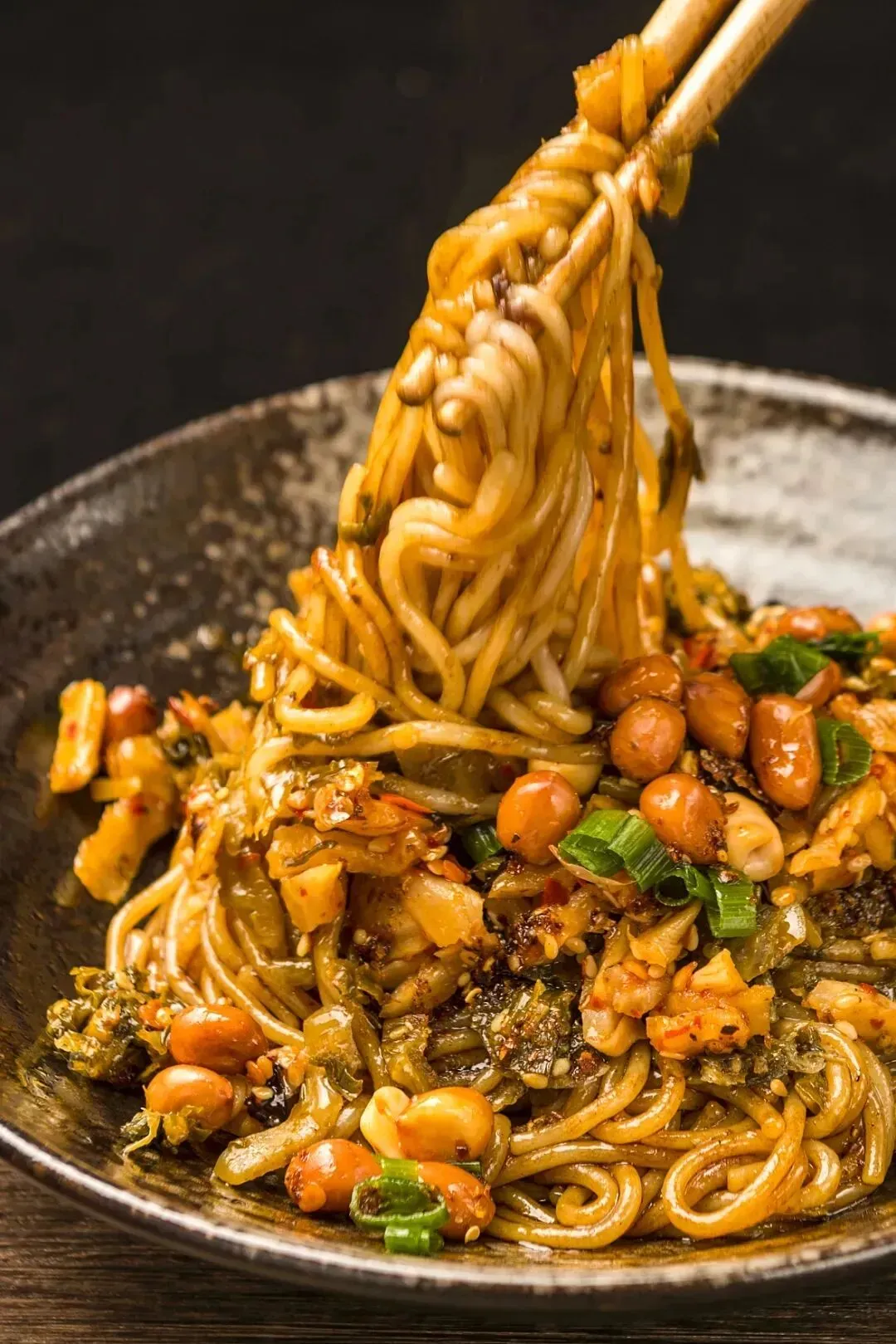 丰富味觉层次: 米粉的滑、花生的脆、萝卜干的酸、辣椒油的辣、葱花的香,一层层写出来。