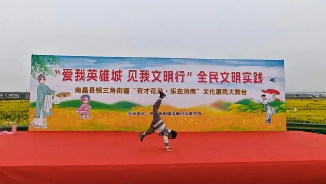 阳春三月,南昌县银三角街道浒南村千亩油菜花竞相绽放,金色花海与蓝天白云交相辉映,绘就一幅秀美的田园画卷。在这如诗如画的春光里,“爱我英雄城 见我文明行”全民文明实践——南昌县银三角街道“有才花开·乐在浒南”文化惠民大舞台火热开展,吸引着众多目光。