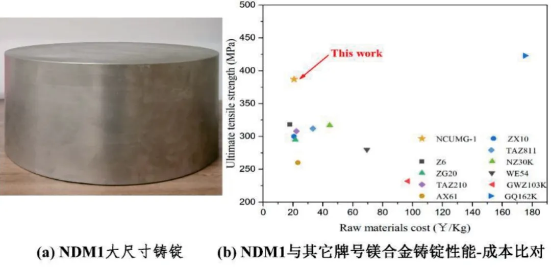 创新点:通过稀土微合金化,完成了大尺寸稀土镁合金铸锭的铸造工艺研究,解决了成分均匀化、熔体纯净化和组织细化等生产关键技术。