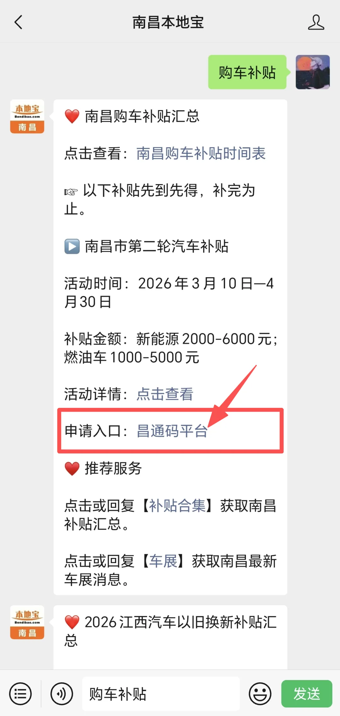 南昌本地宝推出非常多的功能,进入【南昌本地宝】公众号聊天对话框里,点击发消息,在对话框内输入并发送对应的【关键词】即可获取相关内容。