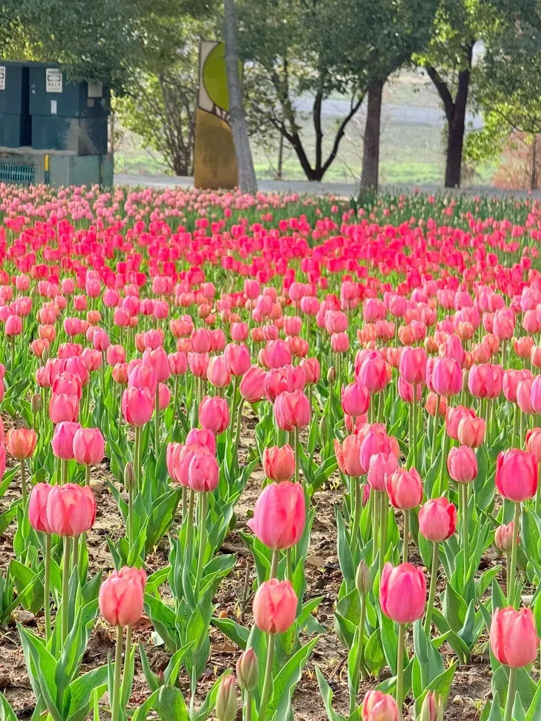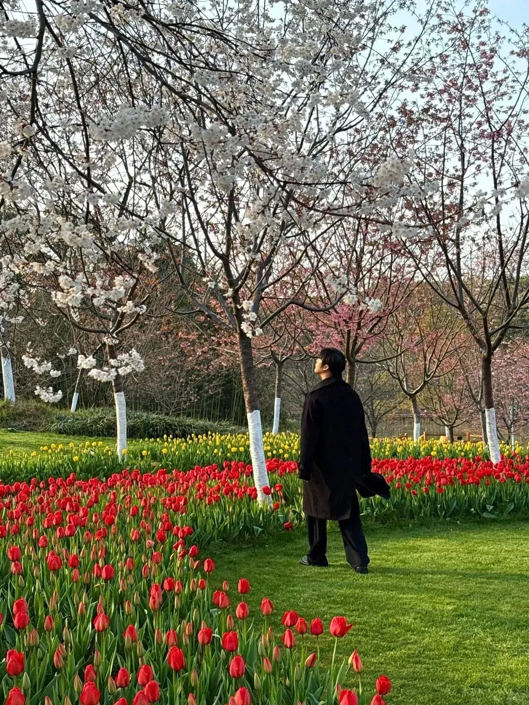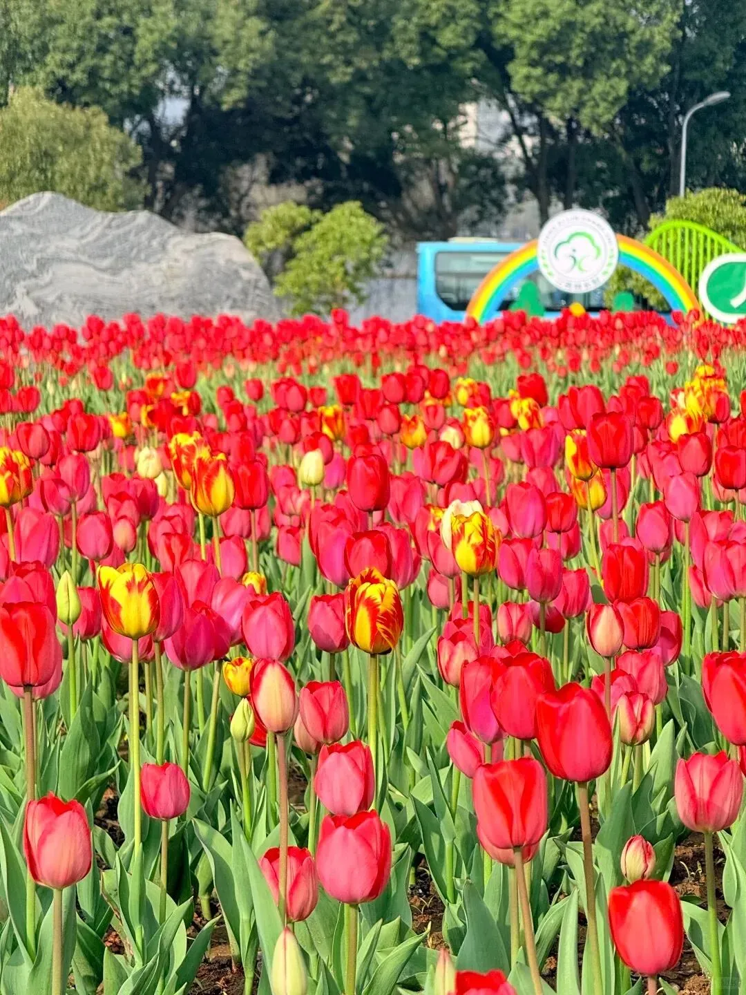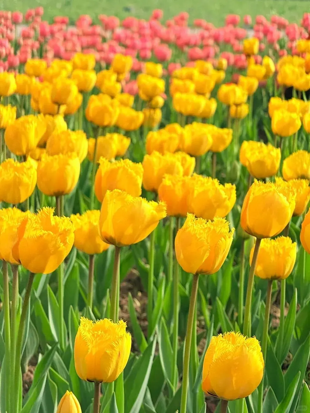 还有郁金香和油菜花开得正盛风一吹花浪翻滚蜜蜂在耳边嗡嗡响