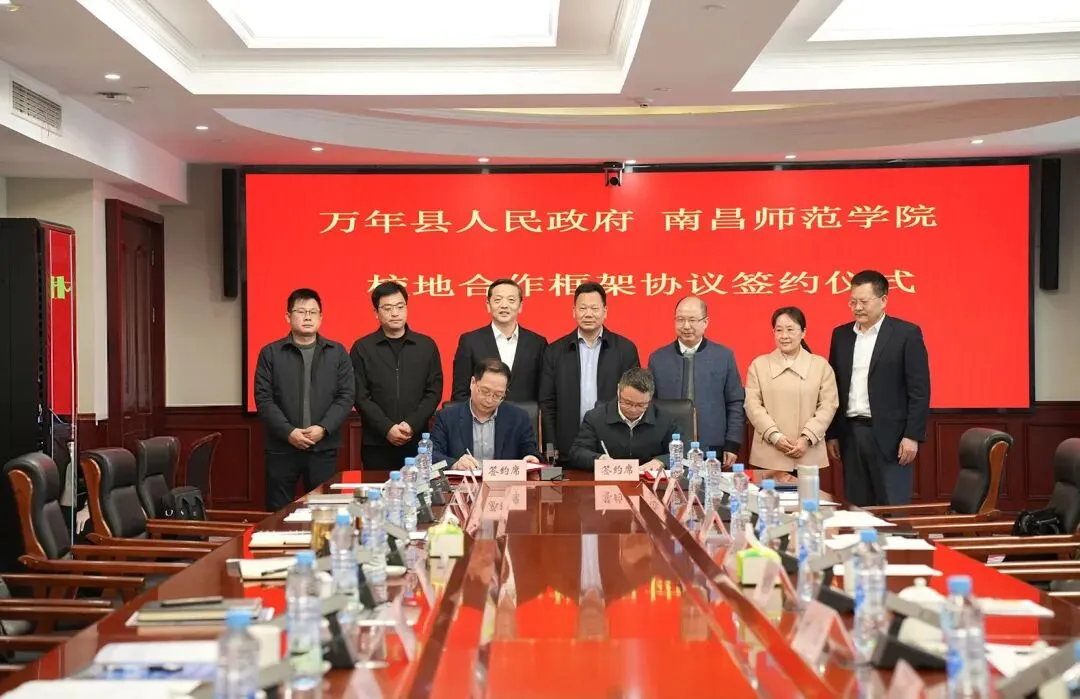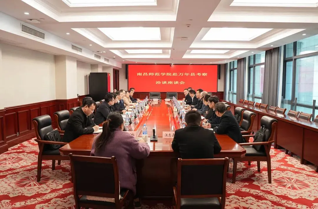 王金平、杜建强详细介绍了南昌师范学院的办学历程、学科优势、办学特色及服务地方产业发展的成果。他们表示,南昌师范学院始终坚持师范底色,在基础教育、文旅融合、电子信息等领域形成了多学科协调发展的办学格局。希望以此次签约为新起点,充分发挥高校人才智力优势,精准对接万年产业需求,推动更多科研成果走出实验室、落地万年,做实合作载体,提升合作成效,实现校地双向赋能、互利共赢。