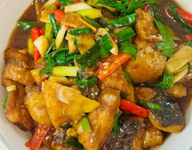 赣南小炒鱼这菜看着家常,其实讲究。鱼肉得片得厚薄均匀,裹上浆,在油锅里滑得刚刚好,嫩得能吸溜进去。关键是起锅前那一烹醋,酸辣味瞬间激出来,不是那种死酸,是带着鲜味的酸。一口下去,鱼肉的滑嫩和芡汁的酸辣在嘴里打架,特别下饭。