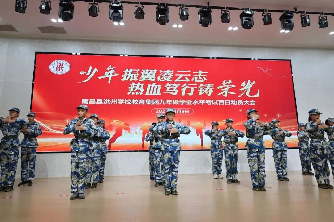 活动最后,全体师生在歌曲《追梦赤子心》中,呐喊出百日冲刺的口号。一百天,是冲刺的一百天,是拼搏的一百天,更是创造奇迹的一百天。愿全体洪州少年,以今日之誓,立百日之志,以无畏之勇,赴梦想之约,用汗水浇灌希望,用拼搏铸就荣光!