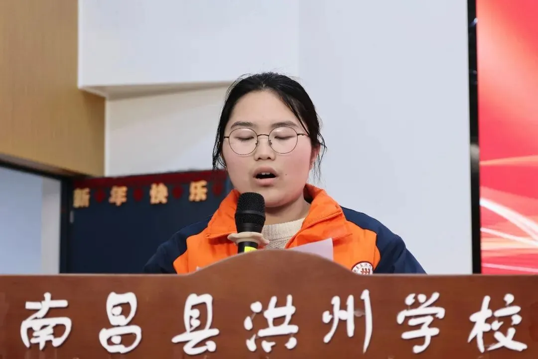 在心声·少年有言环节中,莲塘澄湖校区九年级(11)班姚思睿及象湖滨江校区学生九(1)班邬许愿登台发言,以同窗的视角,分享备考的真实心声,向全体同窗发出“百日并肩,共赴荣光”的倡议,引发全员共情。