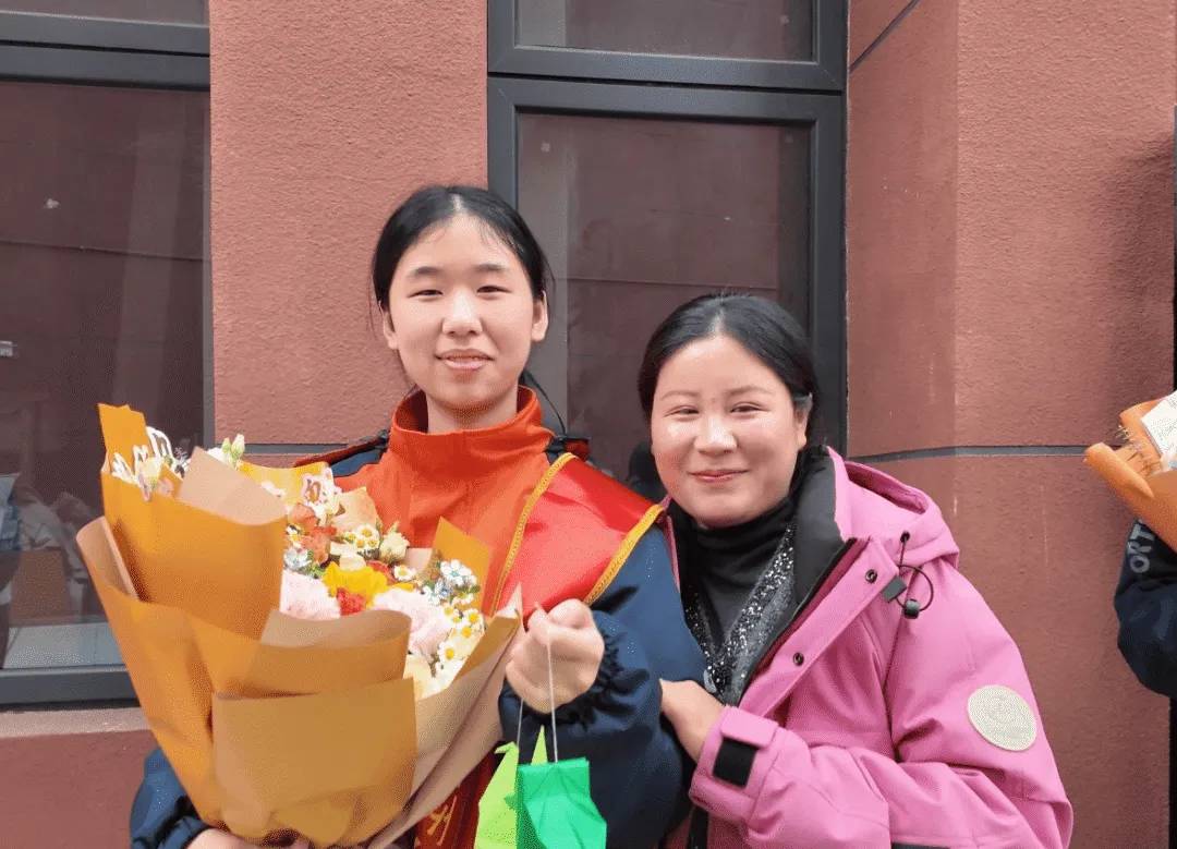 在惊喜·温情献礼环节中,学校特别邀请的部分家长代表,为孩子们送上了精心准备的特殊惊喜。家长们手持鲜花,来到孩子身边,与学子温情相拥、合影留念,共同见证这一意义非凡的成长时刻,用最真挚的陪伴为孩子们加油打气,让温暖与感动充盈整个现场。