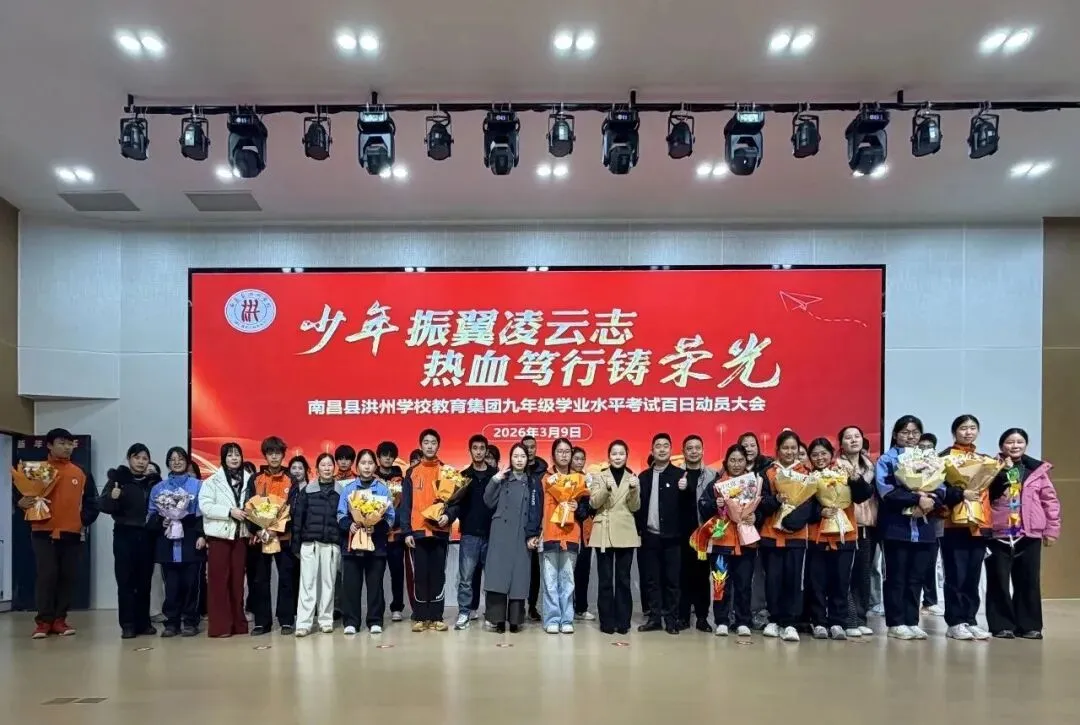 少年负壮气,奋烈自有时!百日,是披荆斩棘的征程,是破茧成蝶的淬炼,更是洪州少年奔赴梦想的决胜时刻。3月9日,南昌县洪州学校教育集团九年级全体师生及家长代表齐聚校园举行以“少年振翼凌云志,热血笃行铸荣光”为主题的百日动员大会活动。