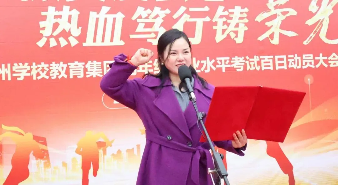 在誓言·百日立誓环节中,莲塘澄湖校区蔡文娟副校长、象湖滨江校区王志群执行校长带领全体学生宣读百日动员誓词。千人共誓,声震校园,让每一句誓言都刻进心底,成为百日动员的行动准则。