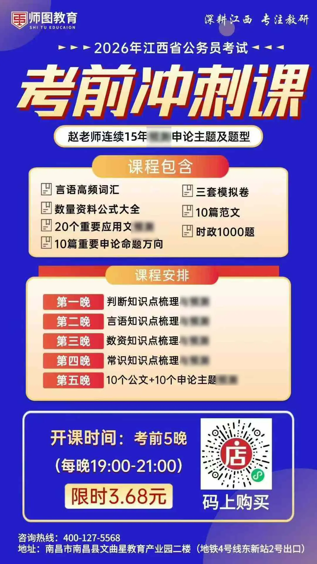 线路:可乘坐17路到南昌中学三经路校区站下车