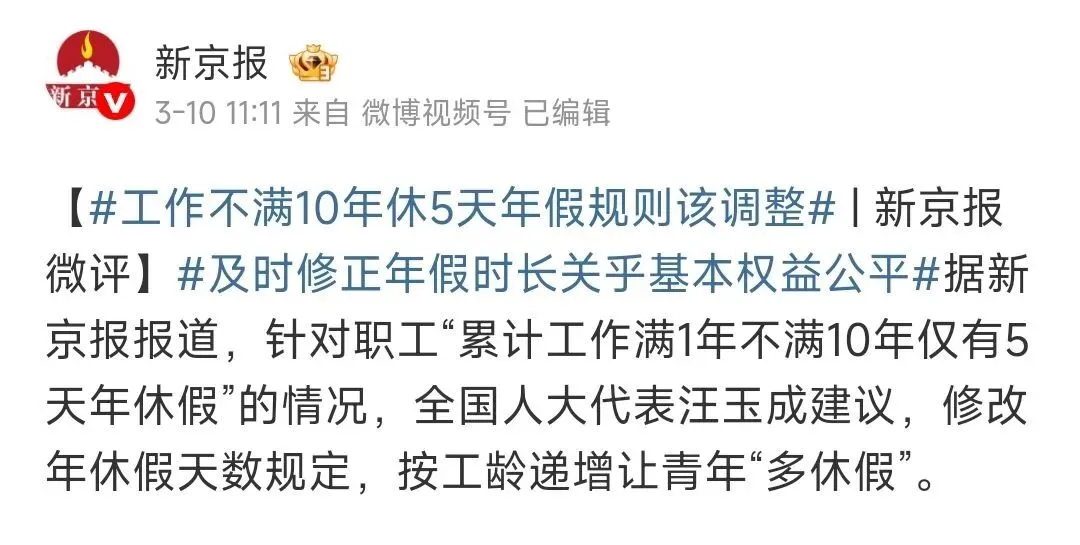 新人入职3年,工龄累计6年,依旧只有5天年假。想陪父母回老家,得掐着日子算,往返路上耗掉2天,真正陪家人的时间只剩3天;想出去旅行,连3天连休都凑不齐,只能选周边短途,体验大打折扣。