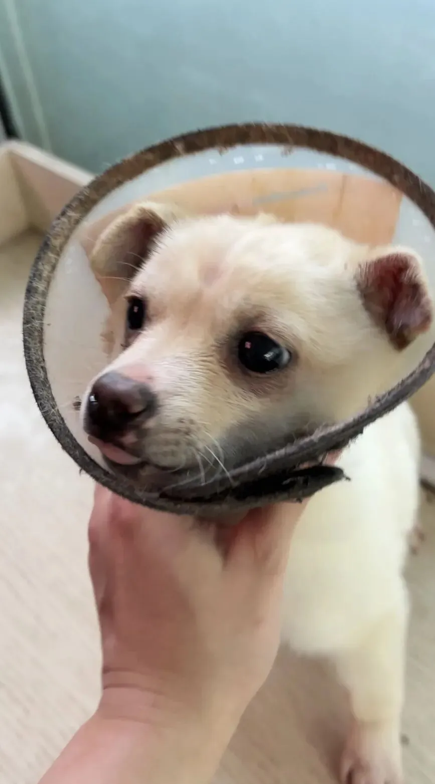 经历:晚上喂小区的流浪猫时捡到的,浑身脏兮兮的,瘦瘦的。毛打结,担心它无生存能力,只能带回家