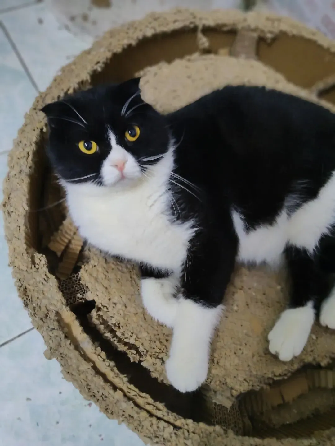 经历:在小区喂流浪猫时捡到的,浑身脏兮兮的,毛发打卷