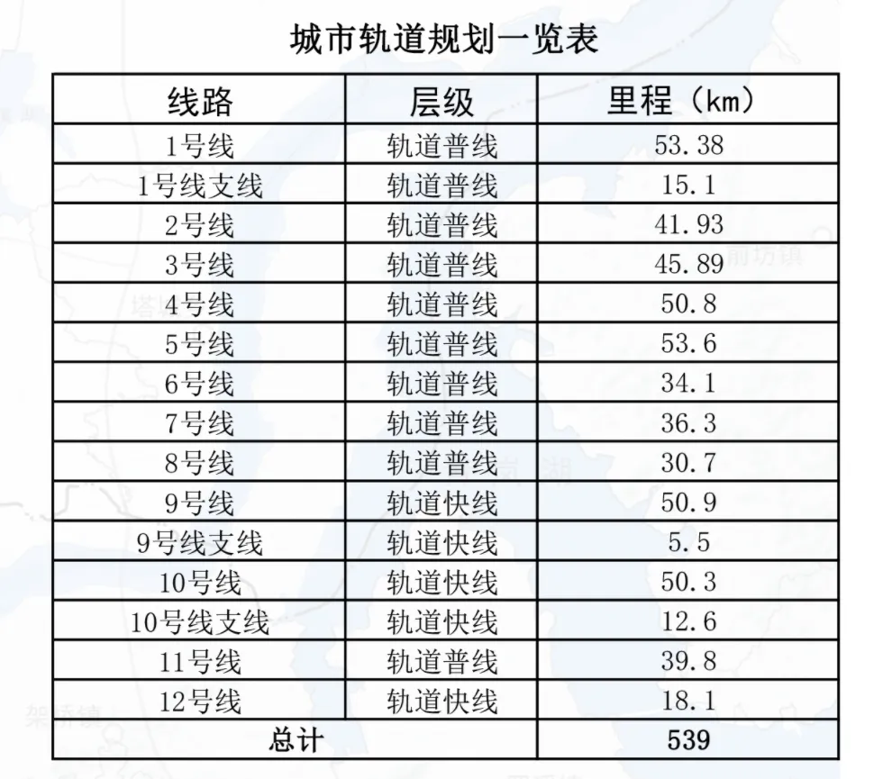 本轮规划城市轨道交通线路共12条(包含轨道快线3条、轨道普线9条),