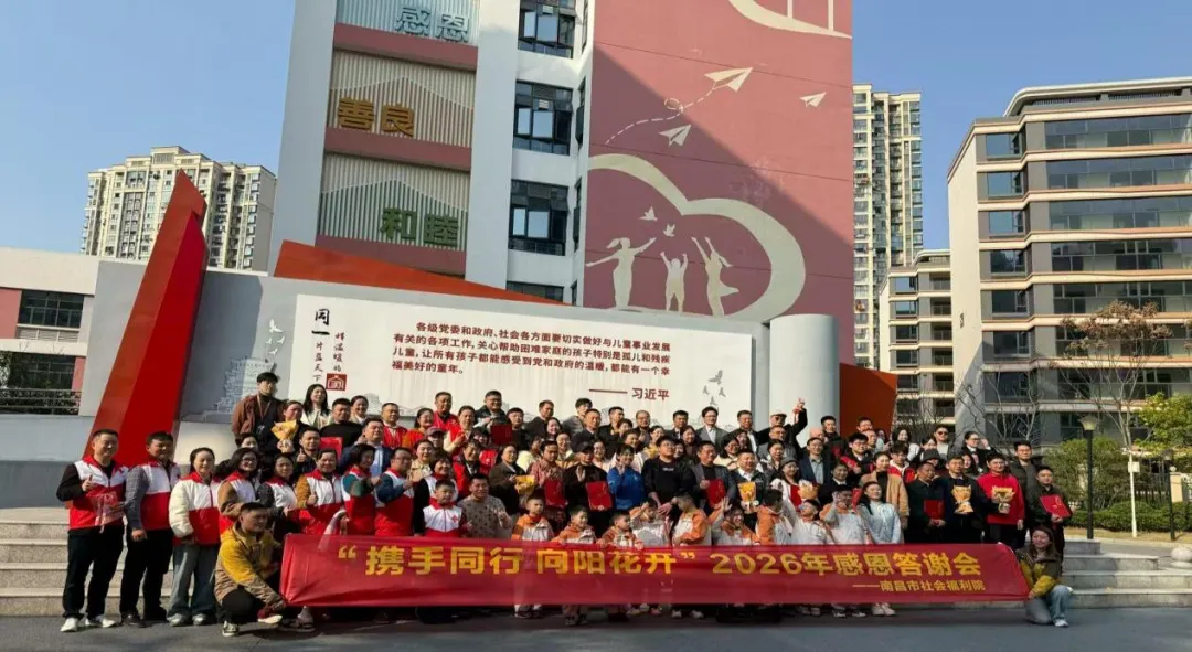 2026年3月10日下午14:00,南昌市社会福利院“携手同行 向阳花开”2026年感恩答谢会举行。南昌市演讲协会红十字志愿者在吴克勤团长、林小红副团长带领下,身着志愿红马甲受邀参会,与各界爱心人士共赴温暖之约。