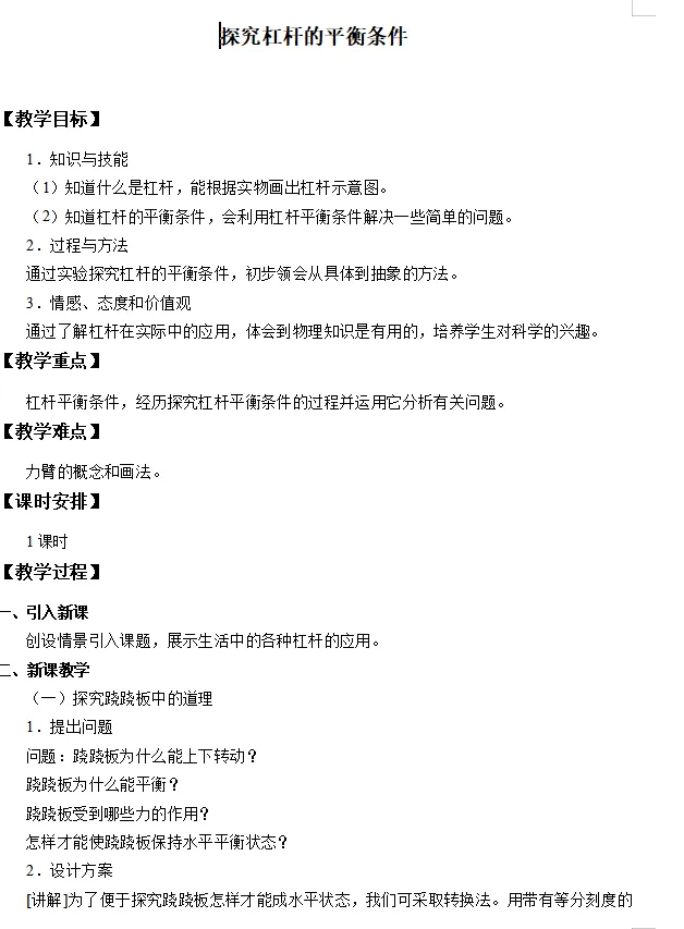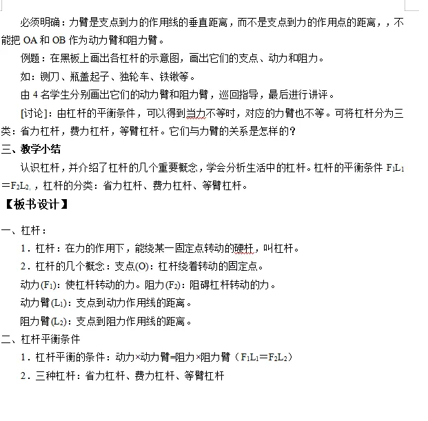 • 学情分析:杠杆概念较为抽象,学生日常不易直观感知,教学中需结合生活实例与实验探究,帮助学生建立认知。