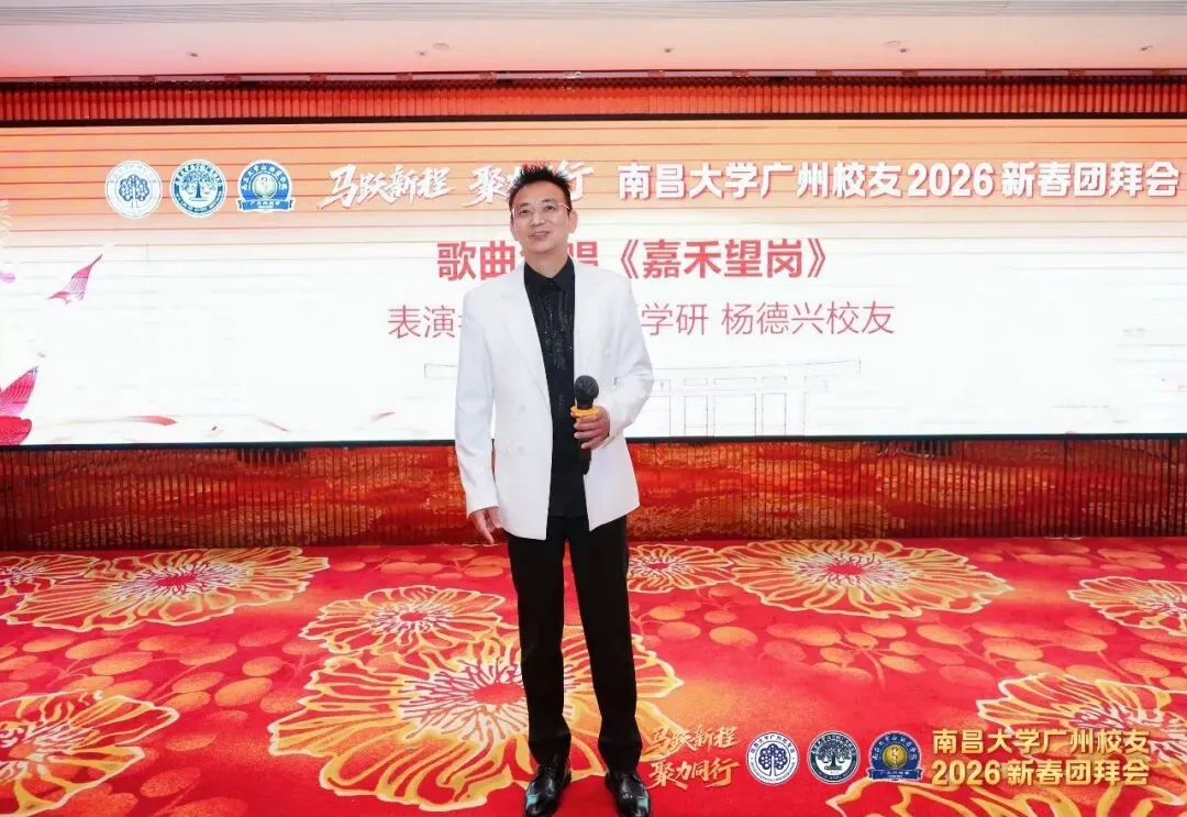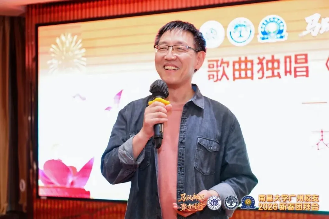 81级医学马宏民校友带来的歌曲《为了谁》格外引人注目——他不仅倾情演唱,更亲自重新填词,创作了《为了谁——致敬南昌大学在穗赣籍校友》:“赣江伴着成长,岭南刻下丰碑……我的乡音,我的南大,我的兄弟姐妹。”深情的旋律与饱含赤子之心的词句交相辉映,唱出了南大学子对母校的眷恋、对乡情的珍视,也展现了医学界校友的才情与风采。
