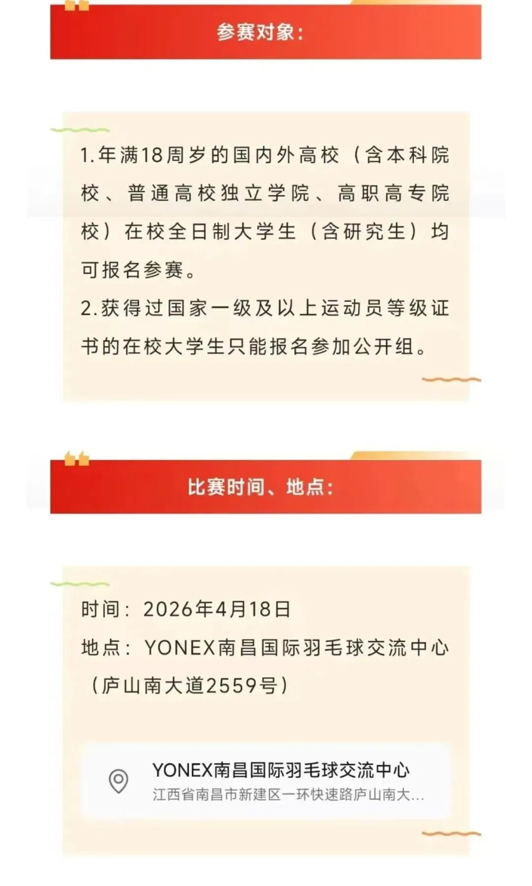 2026年“青年杯”大学生羽毛球挑战赛(南昌站)