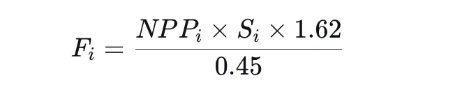 其中,Fi为碳汇量,NPPi为单位面积NPP,Si为区域面积。