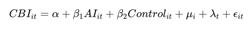 为探究AI对CBI的影响,构建双固定效应面板模型: