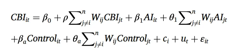 为揭示AI对CBI的空间溢出效应,构建SDM模型: