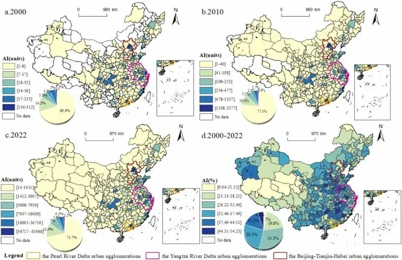 图6 2000–2020年中国地级市人工智能的时空演变趋势