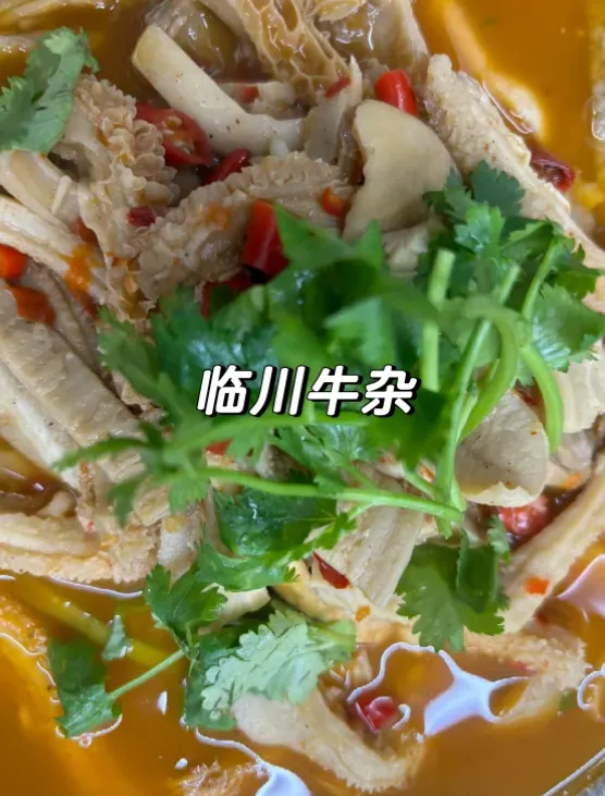 【临川牛杂】这菜讲究一个“烂”字。牛肚、牛肠洗净焯水,切成小块,先在锅里爆炒出油,加姜蒜和大量的干红辣椒。关键是一定要加高汤慢炖,炖到软烂入味,最后撒上一把新鲜的芹菜段。汤汁红亮,牛杂吸饱了辣味,咬一口,汁水四溢,辣得你嘶哈嘶哈,但就是停不下筷子。
