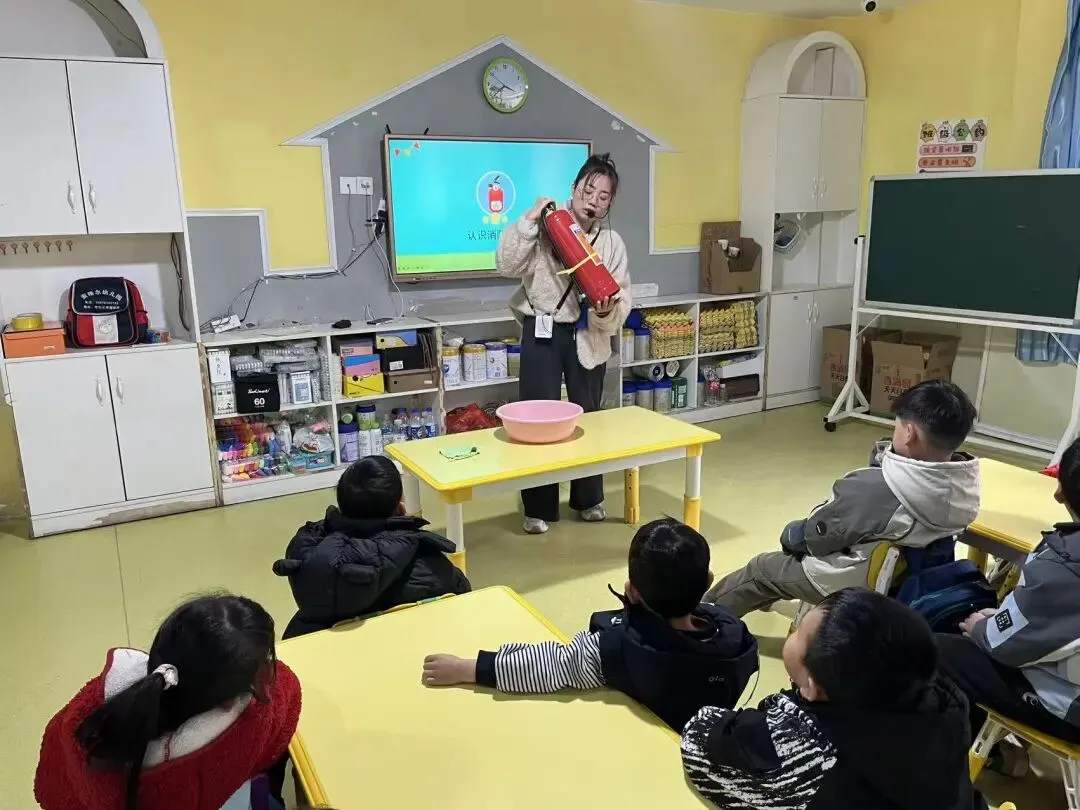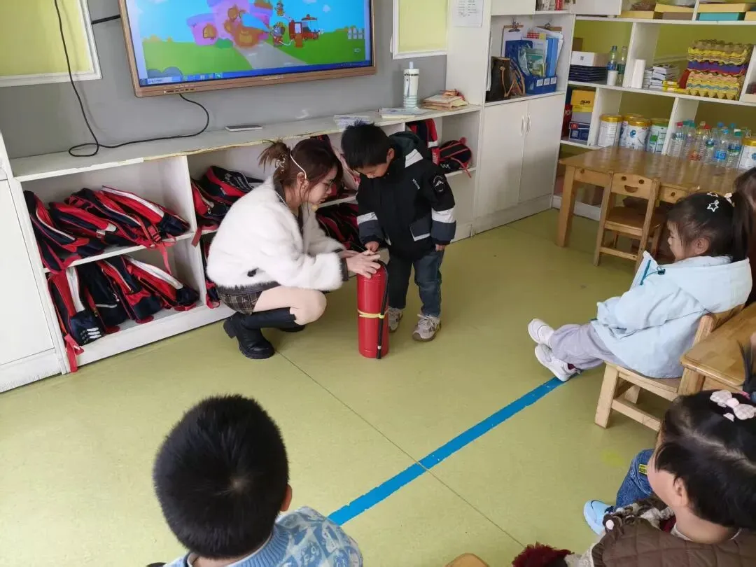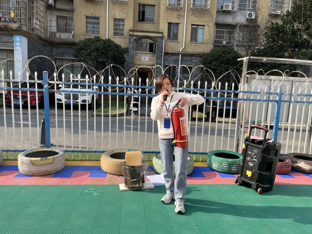 到达“安全区域”后,各班教师立即清点幼儿人数,并向园长汇报班级撤离情况,确保每位幼儿安全撤离,无一人遗漏,整个疏散演练过程既紧张又有序。最后陈主任就灭火器的使用进行演练。