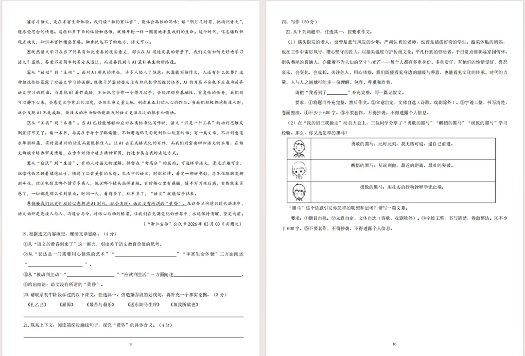 >辽宁省沈阳市南昌中学2025-2026学年度下学期九年级期初语文试卷