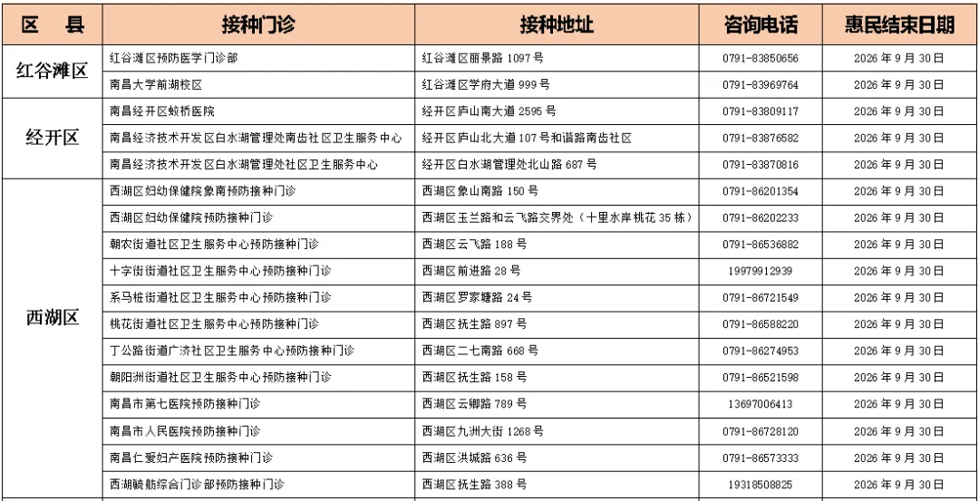 南昌市各县区开展九价HPV疫苗惠民活动接种门诊信息