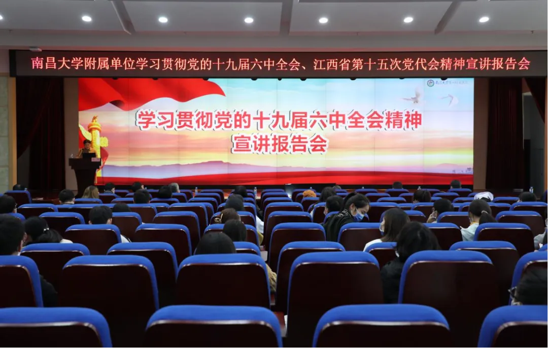 本次宣讲由南昌大学部署安排,第一附属医院牵头承办,第二附属医院、第四附属医院、附属眼科医院、附属口腔医院及省医学科学院党员职工代表共计200余人参加。会后,大家纷纷表示,将以此次报告会为契机,深入学习贯彻党的十九届六中全会精神和省第十五次党代会精神,不断发挥自身专业所长,为学科技术提升、科研创新贡献力量,为助力学校建设“江西底色,中国特色”的世界一流大学和一流学科而奋勇前行。