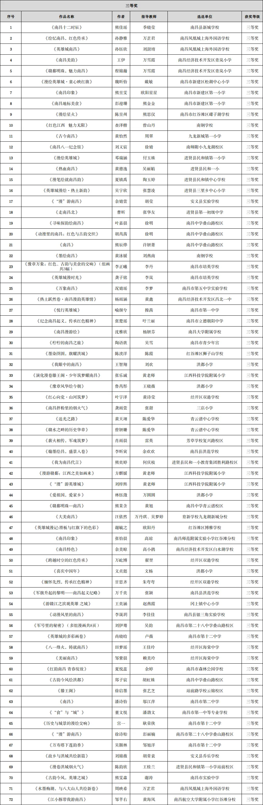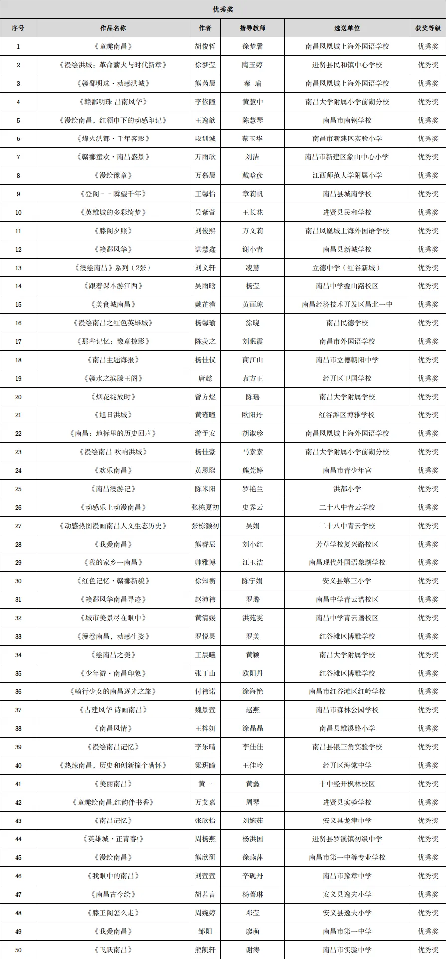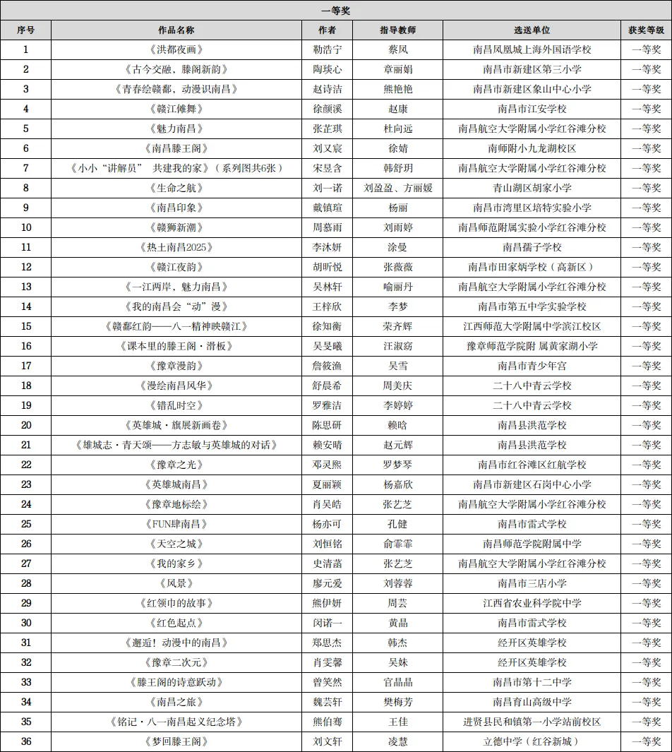 2025年“动感热土 漫绘南昌”南昌市青少年动漫创作大赛评审结果公告