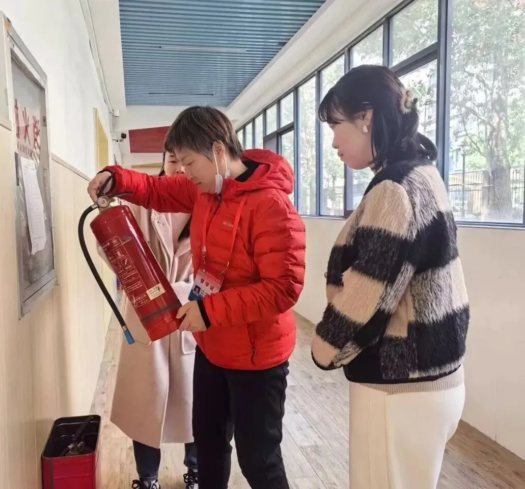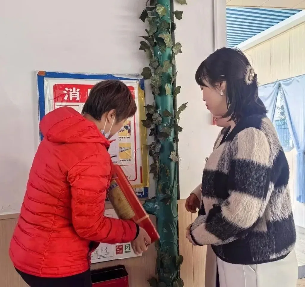 安全是园所发展的底线!督导组重点检查园内消防设施运行情况,随机抽查消防灭火器等设备,详细确认其生产日期、有效期限、压力状态、摆放位置及维护记录。