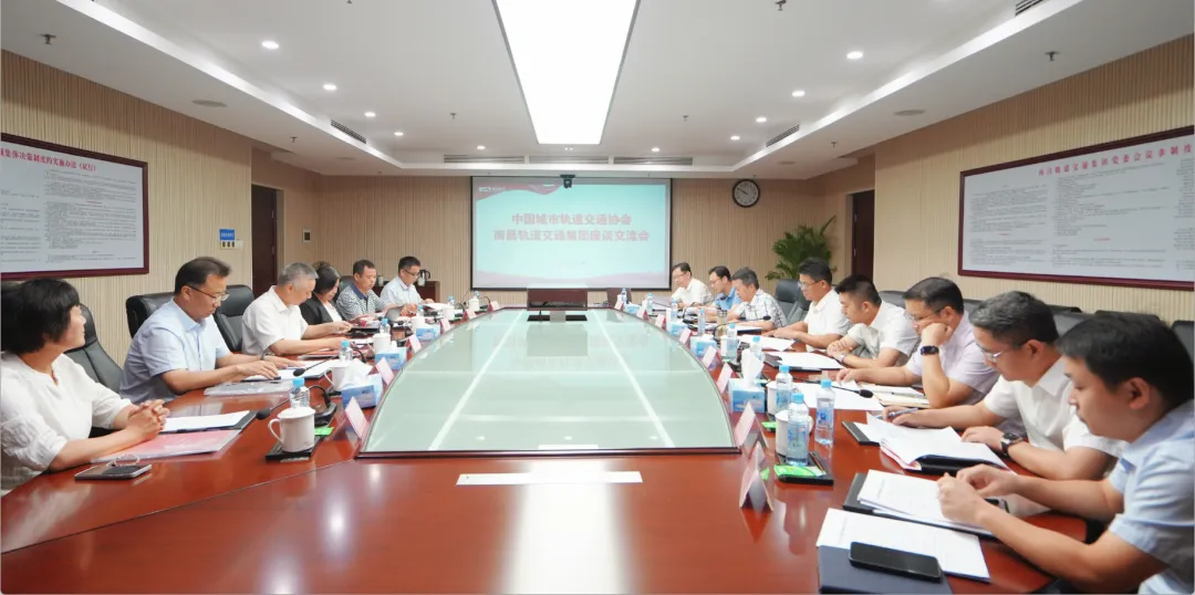 8月18日,中国城市轨道交通协会领导丁树奎一行调研南昌轨道交通集团有限公司(以下简称:南昌轨道集团),就绿智城轨、融合城轨建设发展情况,与南昌轨道集团党委书记、董事长万先逵,党委委员、副总经理徐文俊,总经理助理马长锋等展开深入研讨和交流。