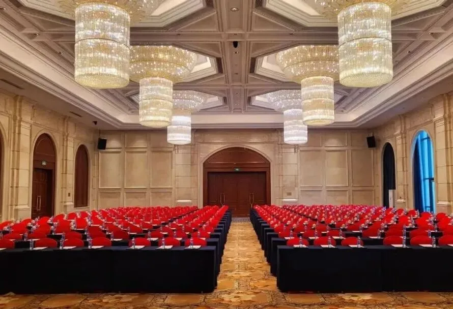 此外,酒店还拥有16个规格多样、功能齐全的大小会议室,包括联合国式圆桌阶梯会议厅,可满足婚礼相关的各类会议、答谢宴、亲友聚会等需求,宴会厅可灵活切换剧院式、酒会式、课桌式、回型等多种摆台,适配不同场景需求。