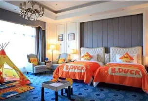 特色主题房型,解锁多元体验:设有小熊尼奥、小黄鸭、海底小纵队三种卡通主题亲子房,一秒俘获小朋友的芳心,让带着孩子的亲友也能拥有愉悦的入住体验;120㎡豪华套房配备独立阳台,一房一景,尽览园区美景,更有精梳纯棉布草、24小时加急洗衣、个性化枕头、免费婴儿床、VIP夜床等贴心服务,用细节诠释五星礼遇。