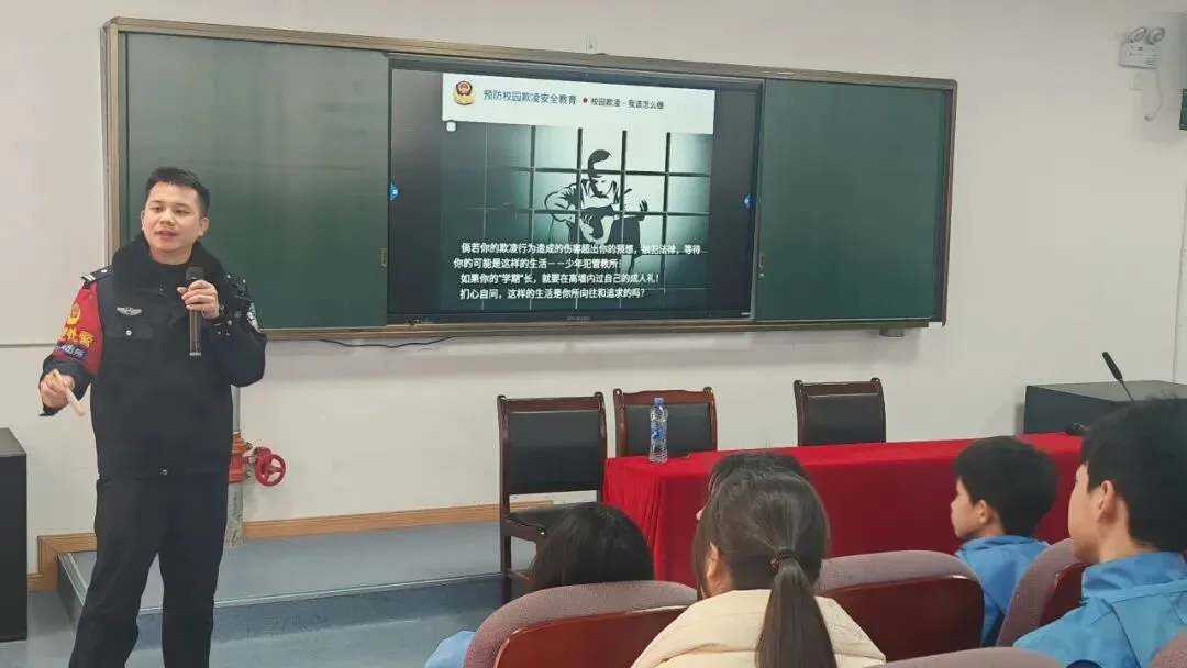 新学期伊始,书页翻动,梦想起航。为进一步加强青少年法治宣传教育,筑牢校园安全与青少年权益保护防线,南昌第二十八高新实验学校邀请艾溪湖派出所民警万彦廷、尹芳,分别在一部、二部开展“预防校园欺凌安全教育”及“认识涉毒违法犯罪立法”的讲座,为本校初中生送上“开学第一节法治教育课”,引导青少年知法、懂法、守法、用法,学会运用法律武器保护自身合法权益,坚决向不法行为说“不”,系好新学期的“法治扣子”。