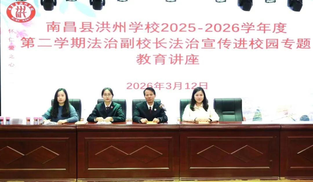 2026年3月12日上午,南昌县洪州学校邀请学校法治副校长、南昌县检察院副检察长余辉华走进校园,开展法治宣传教育专题讲座。