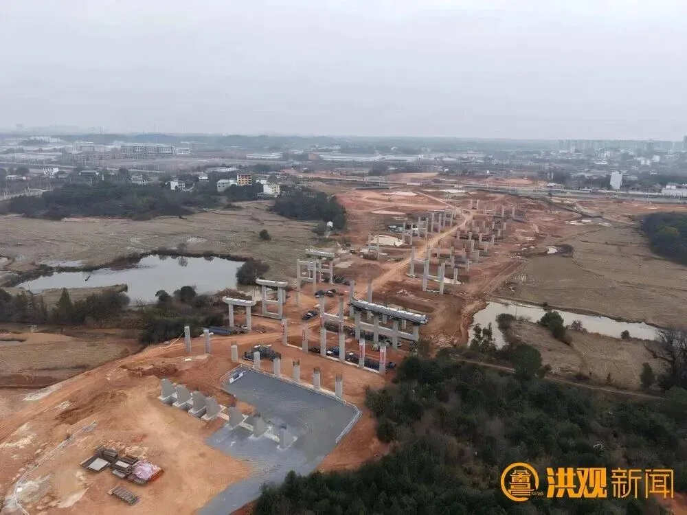 南新枢纽建设工地上同样热火朝天,截至目前,施工方已累计完成桩基185根;墩柱33个已浇筑完成,路基填方累计完成2.54万立方米。永修枢纽目前已累计完成桩基332根,墩柱101个,通涵安装7道,路基填方20.9万立方米。