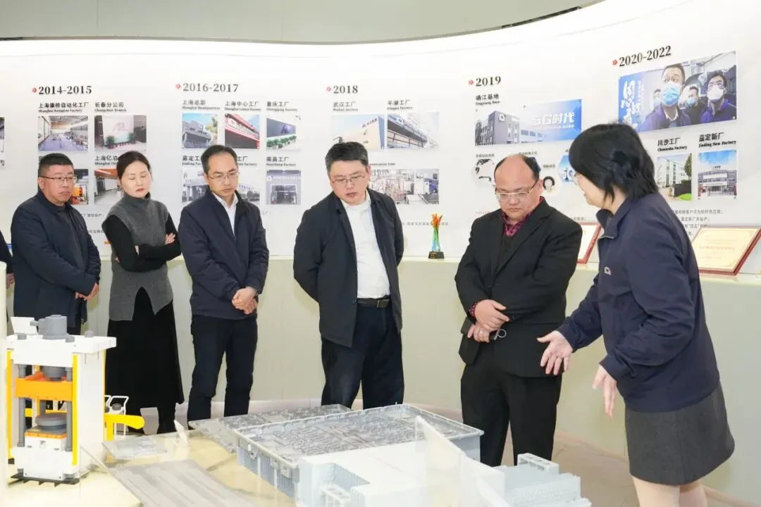 在周杰文秘书长、上海精智外联经理王建萍的陪同和讲解下,杨燊区长一行首先参观了上海精智展厅,详细了解了企业的创业发展历程、核心业务板块以及前沿技术成果,以及上海精智“工业AI+智能制造”的发展脉络和创新实力。