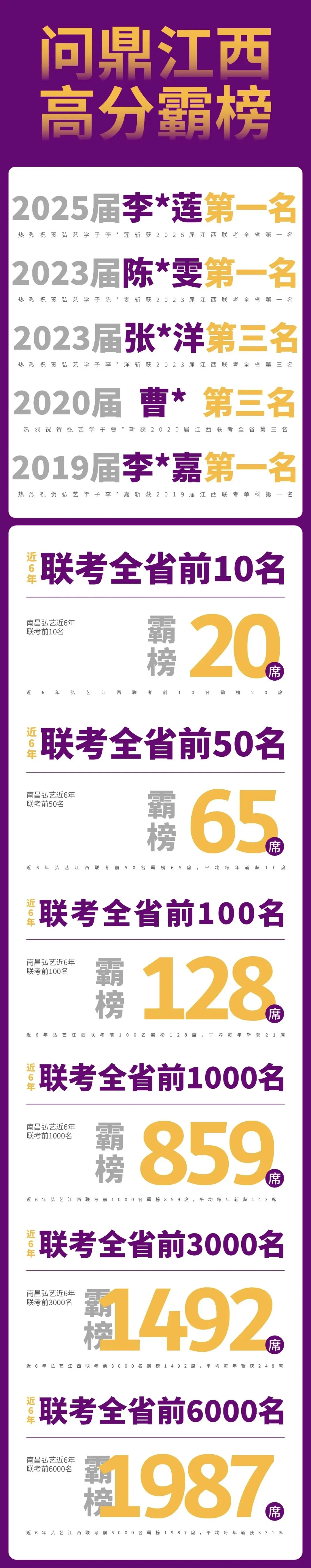 ◎近六年江西联考前10名霸榜20席